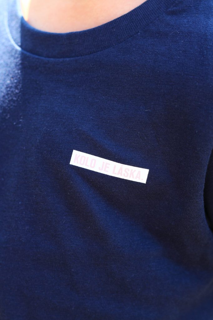 Na tričku je nápis Kolo je láska.