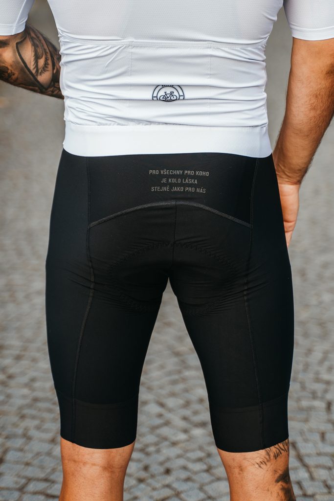 Naše pánské bibsy, nebo-li kalhoty na kolo. Jsou s kšandami, neměj strach a jsou velice minimalistické. Logo na přední straně nohy a na zadní straně nenápadný nápis.