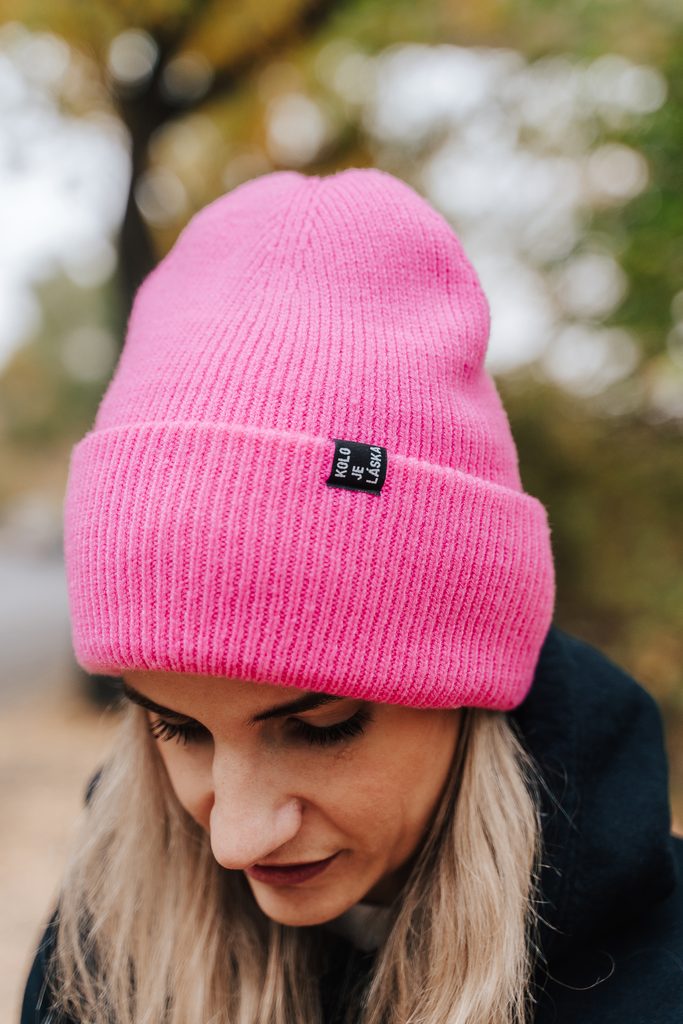 Naše suprová čepice s tkaným lablem Kolo je láska na levé straně čepice. Čepice je supr čupr příjemná.